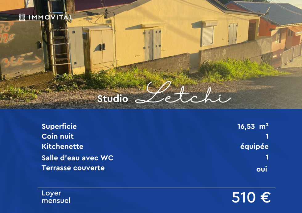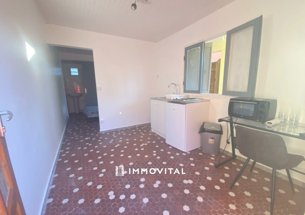 Nous vous proposons à la location un studio lumineux parfait pour un étudiant ou jeune actif. Il est composé d'un séjour équipé d’un coin kitchenette fonctionnelle.D'un coin nuit aménagé pour un espace de repos confortable et aéré.Salle d’eau avec WC.A l'extérieur vous disposé d'une cour privative et d'une terrasse couverte attenante.Ce bien vous est proposé par IMMOVITAL Basse-Terre, contactez-nous vite au 0590 88 10 10. IMMOVITAL est aussi présent à Jarry 0590 48 1010 et au Moule 0590 23 10 10.